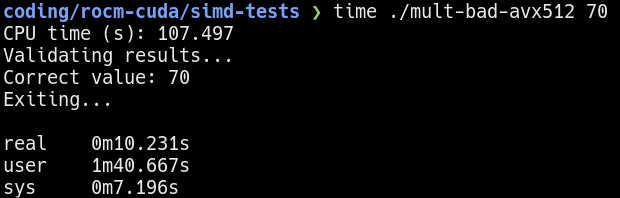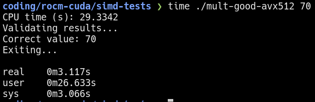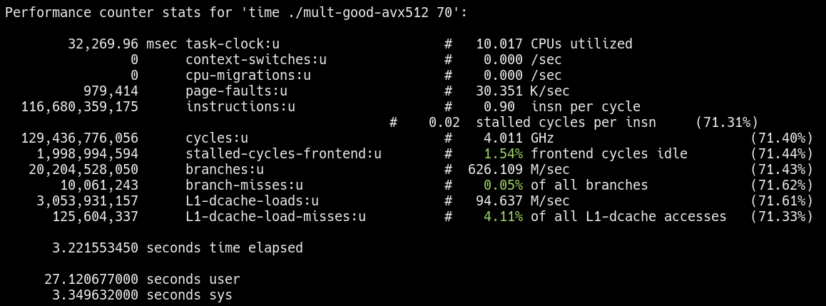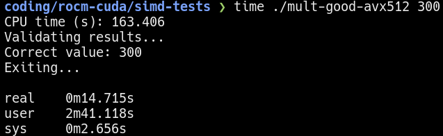 Here, I recompiled the multi-threaded program using the -mavx512f option.